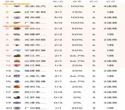 CBA最新积分榜