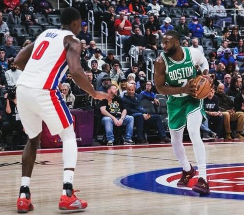 比赛开打之后,杰伦布朗就肩负起了防守活塞核心卡宁安的重任,在他的重点照顾下,状元郎前两节个人进攻的表现堪称灾难,7次出手只命中了1球,好在传球依旧在线,送出了7次助攻,没有让活塞崩盘,反观杰伦布朗自己则砍下了19分,帮助凯尔特人半场战罢,带着8分的优势,回到了更衣室。