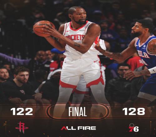 杜兰特再次在火箭与费城的比赛中承担重任_NBA直播