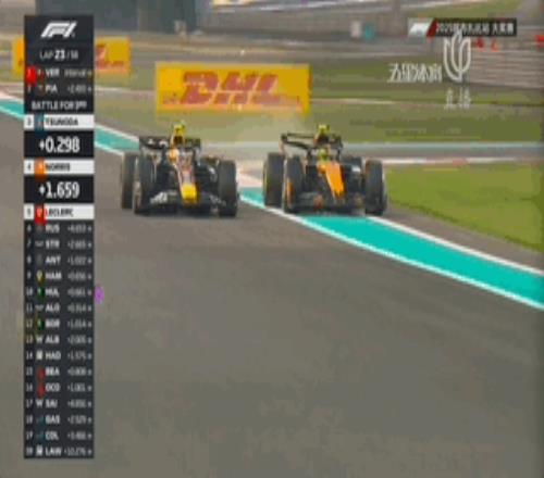 第4圈,诺里斯已经被皮亚斯特里甩出了DRS区,而此时身后的勒克莱尔已经进入到了射程之中!第8圈,勒克莱尔打开DRS之后已经来到诺里斯身后0.3秒左右的距离,他随时会发动进攻!为了兄弟维斯塔潘拼命,勒克莱尔连第四都不想要了......