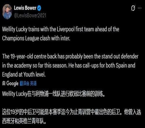 年仅19岁的青训天才中卫卢茨基,日前被破格叫进利物浦一线队,跟队备战对国际米兰的欧冠小组赛,并入选了出征意大利的19人大名单。这位出生在西班牙萨拉戈萨的小将,一路从青训梯队爬到一线队边缘,如今再获“陪练”机会,足见俱乐部对他潜力的认可。