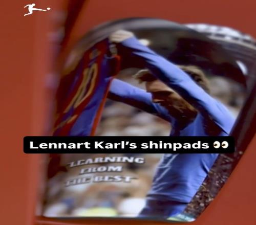 虚假的儿皇梦卡尔的护腿板印的是:梅西绝杀皇马、晒球衣!